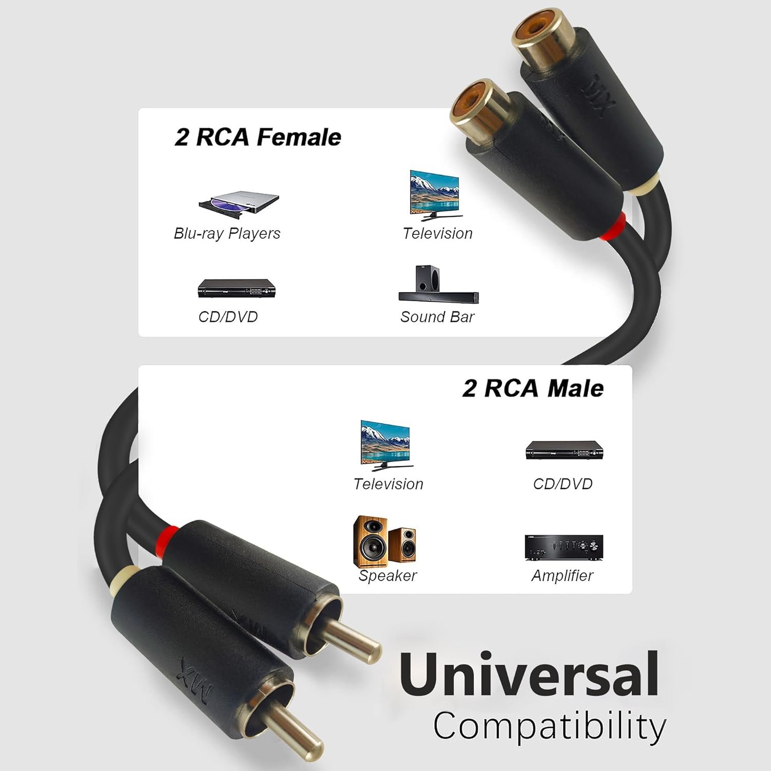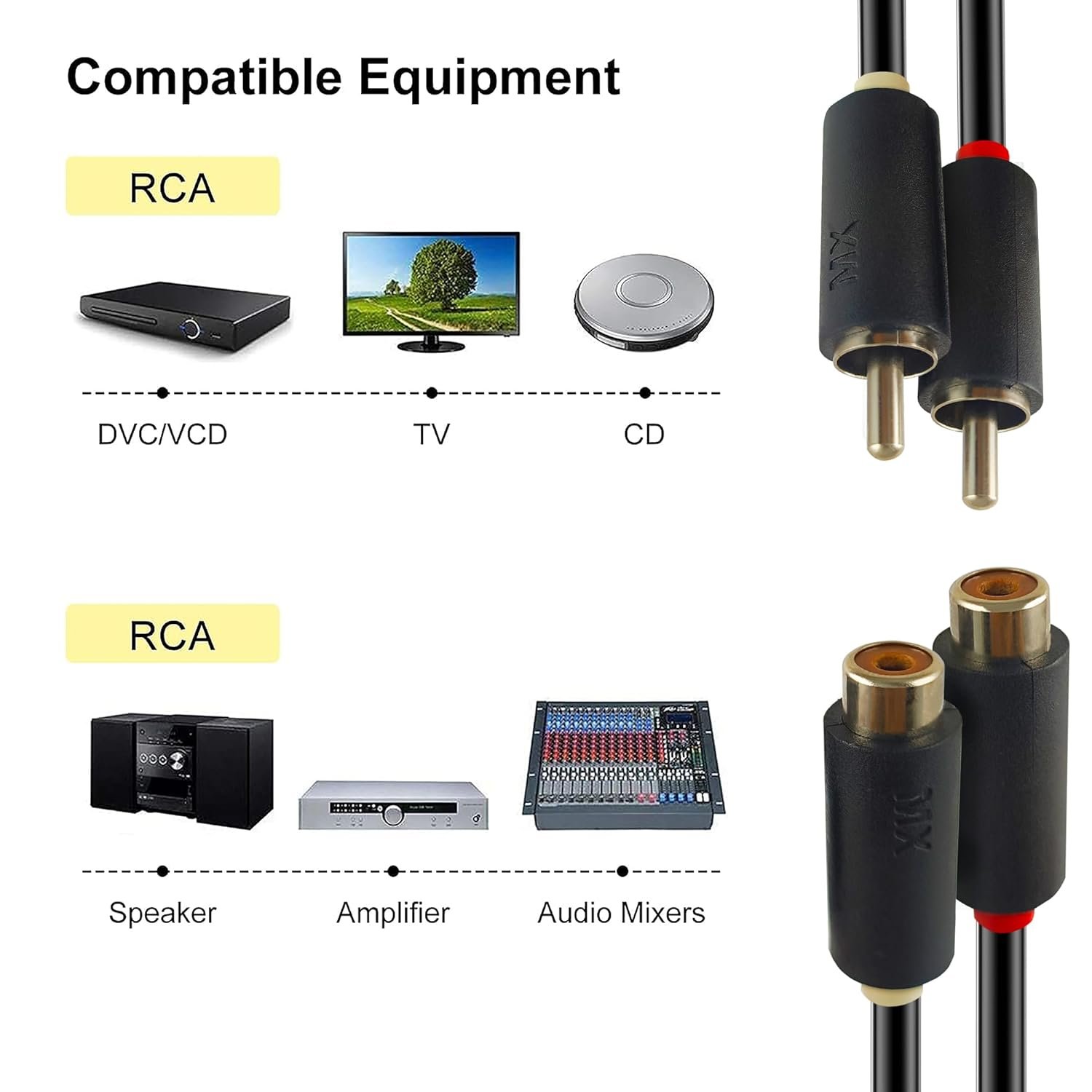 MX RCA cables have separate protective shield for maximum rejection of RFI and EMI