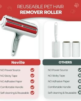 Upgrade Pet Hair Remover Roller handle with back cover is very comfortable. Easy to use: quickly minimize the amount of fur on the furniture and clothes by simply moving back and forth