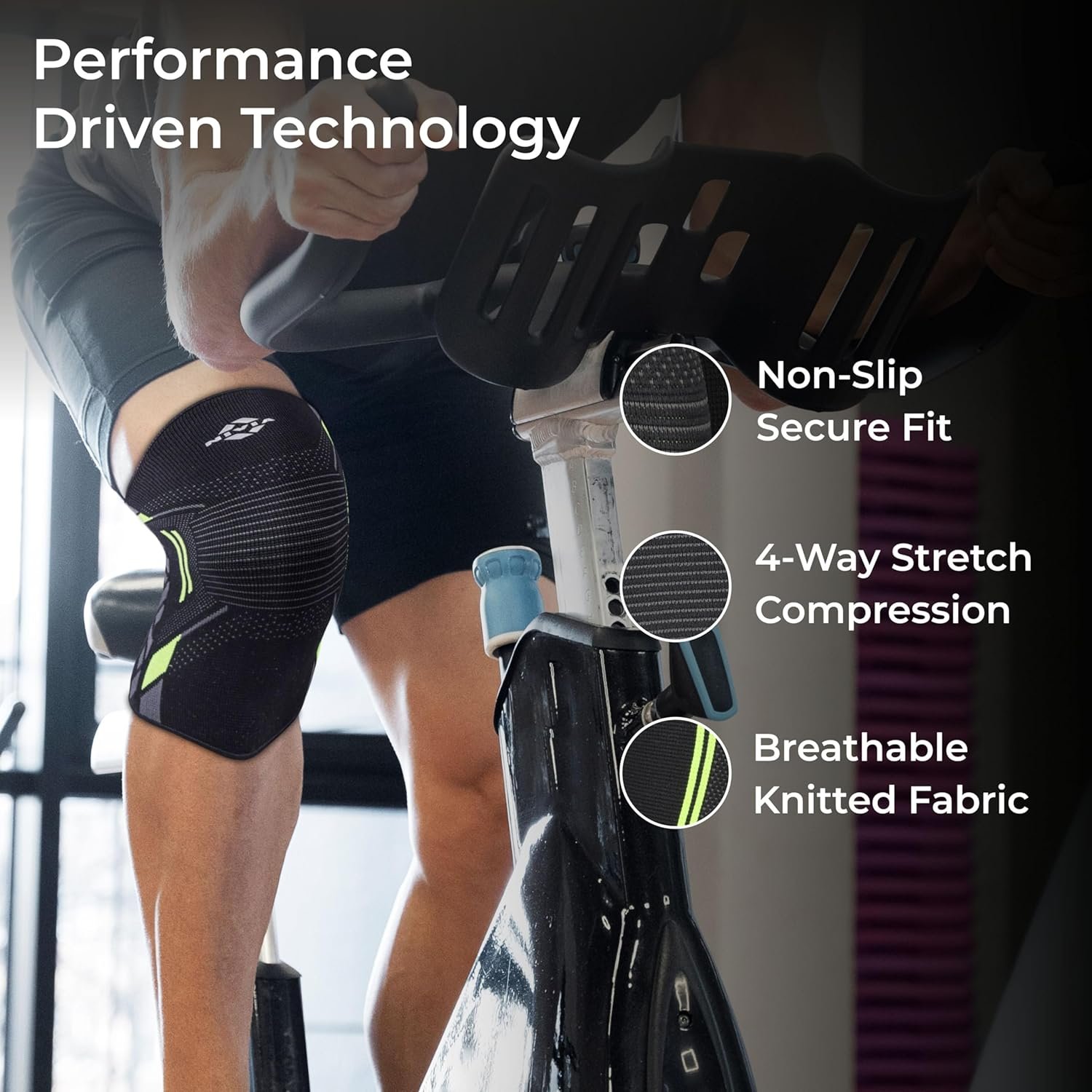 Knitted knee support with anti-slip feature: Provides stability and prevents slipping during activities.