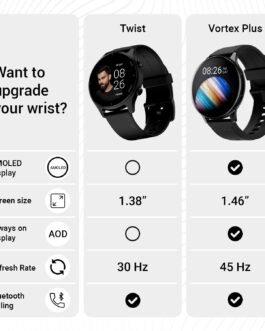 1.38″ TFT display: Featuring a vibrant round display and a stylish metallic finish, the smartwatch offers a premium on-screen experience.;Tru SyncTM: Hassle-free pairing, stable connectivity and lower battery consumption combine to provide the most advanced calling experience.