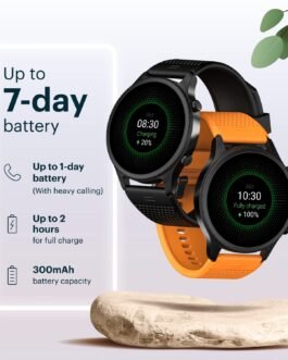 Up to 7-day battery life – Get up to 7 days of battery life on a full charge & up to 1 day of power with calling activated. Its 300mAh battery takes approx. 2 hours to fully charge. (Battery life can vary due to multiple factors such as turning on continuous HR tracking or turning up the brightness)