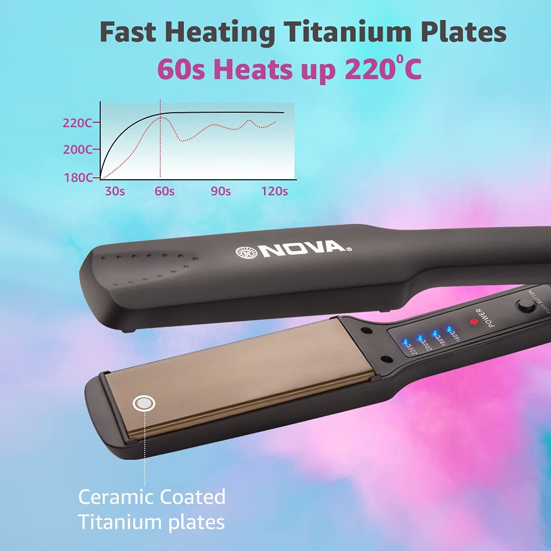 Hair straightener comes with Ready to use in 60secs rapid heating technology;This straightener heat balance technology prevents damage from heat-overconcentration