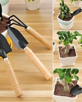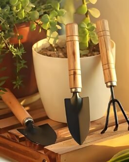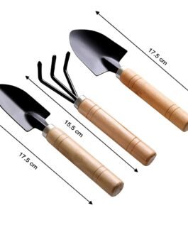 Trowel: Crafted with a wooden handle that provides stability and control during planting and transplanting tasks, featuring a durable steel for efficient digging and soil manipulation.