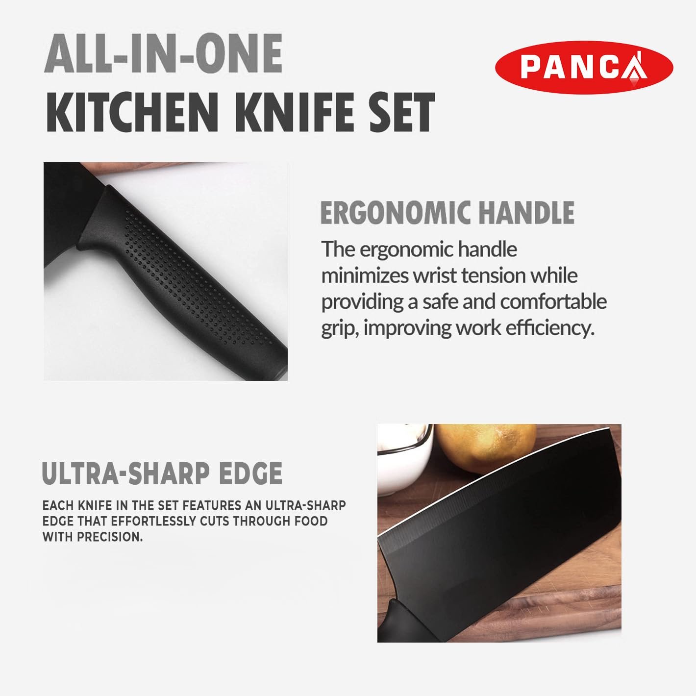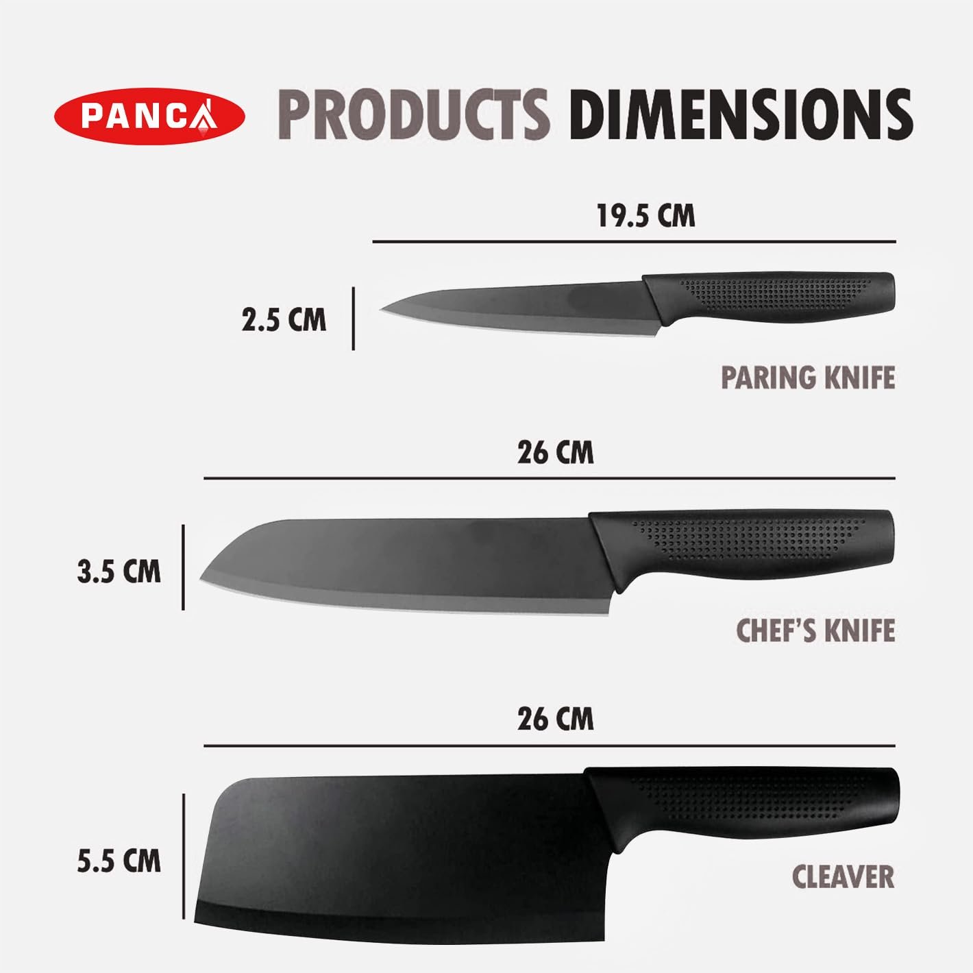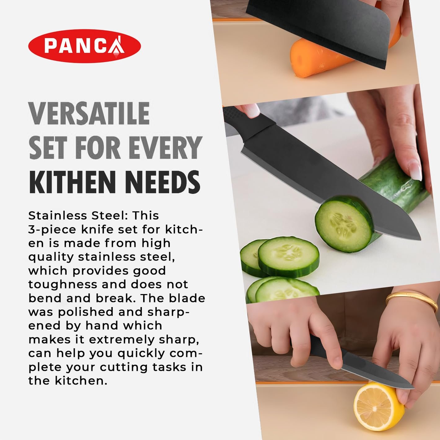 Premium 3-Piece Set: PANCA knife set of 3 includes a chef knife, utility knife, and vegetable knife, designed for chopping, slicing, and dicing with professional precision at home.