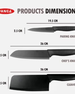 PANCA Knife Set of 3 Stainless Steel Knives for Kitchen| Sharp Edge Cutting Chef Knifes for Chopping Vegetables, Fruits, Multipurpose Knife, Kitchen Tools(Set of 3, Black)