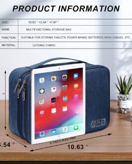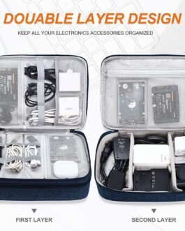 Perfect Gift: It is a great gift for Christmas, New Year, and Valentine’s Day. Designed with a sturdy handle and smooth zipper for carrying everything you need easily. Size: Portable size 10.63 X 7.87 X 3.54 inches.This electronic organizer bag is made of water-resistant and durable cation materials.Double Layer Design: The electronics bag is designed with 2 Layers of the interior compartment, the upper compartment can be used to organize small items, like cables, USB, and chargers, and the lower partition to store larger items, like adapters, and external hard drives.