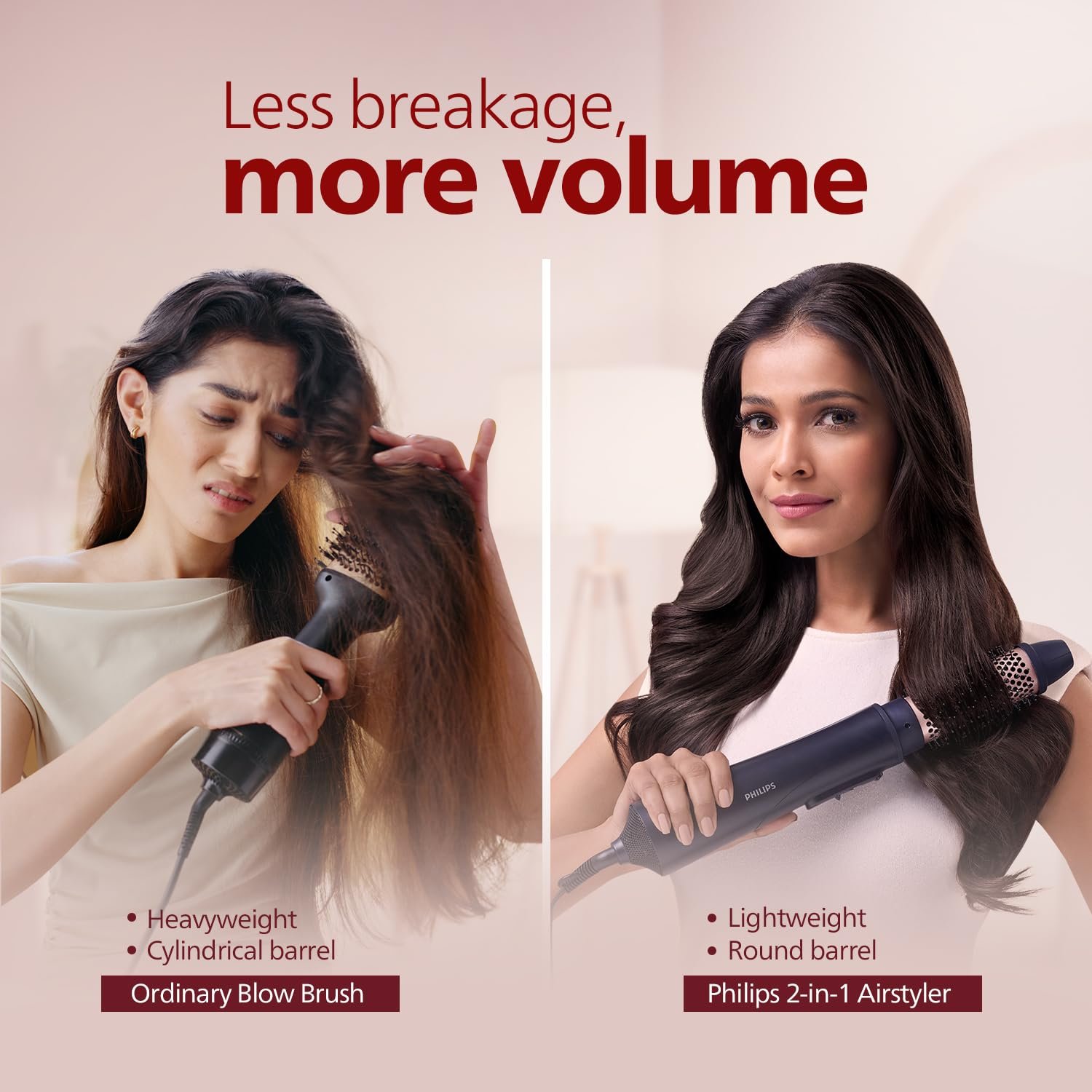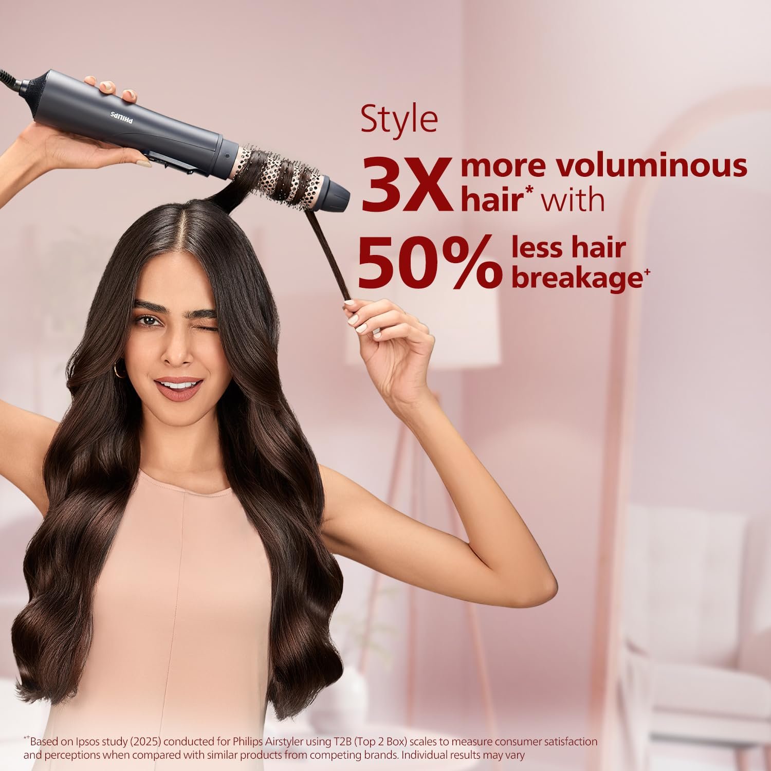 Elevate your everyday style with Philips 2 in 1 Airstyler : Gives 3X More Volume with 50% Lesser Hair Breakage.