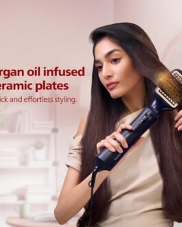 The styler uses ceramic plates infused with argan oil to make styling fast and effortless, with a gliding action that feels as silky smooth as your hair looks