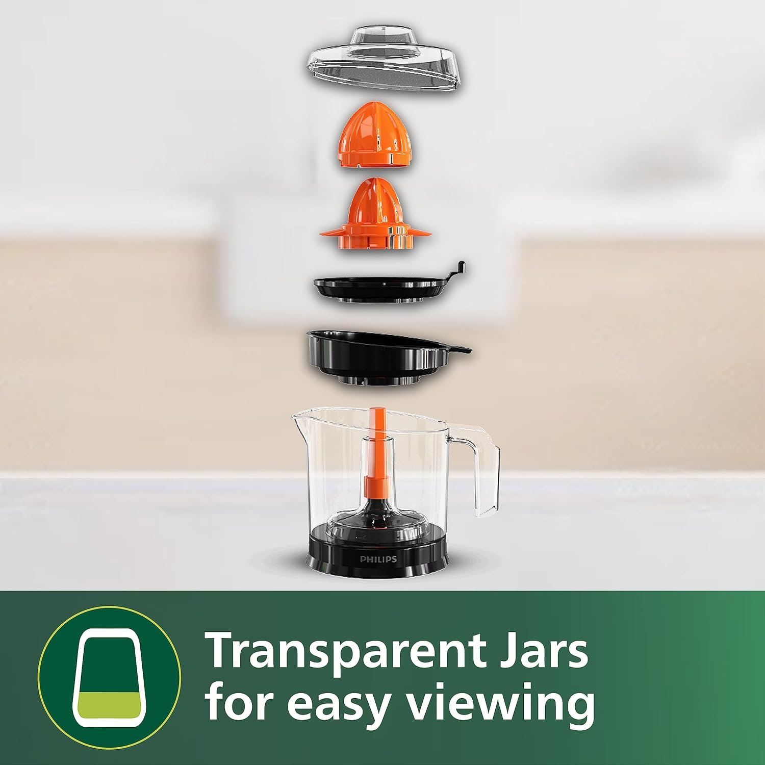 Transparent jar makes it extremely easy to monitor juicing avoiding overflow.