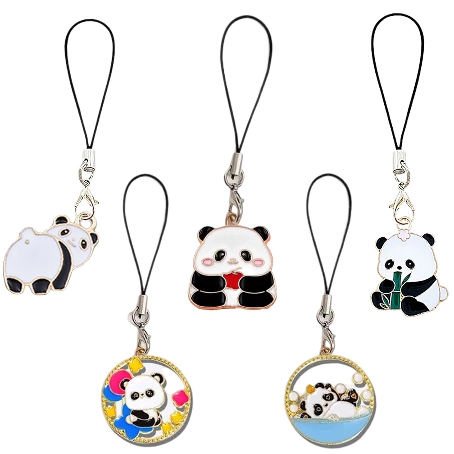 Phone Charm, 5 Pack Cute Aesthetic Keychains for Girls, Panda Keychain, Bag Charms, Mobile Charms for Phone Case, Stylish Accessories for Daily Use and Gifts