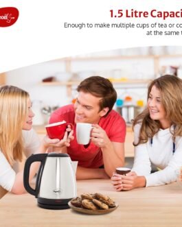FAST BOIL: This 1500W electric kettle has concealed heating elements and can boil up to 1.5 litres of water in 5 to 7 minutes, quicker and safer. Start your day with a cup of instant lemon tea, green tea, hot water.