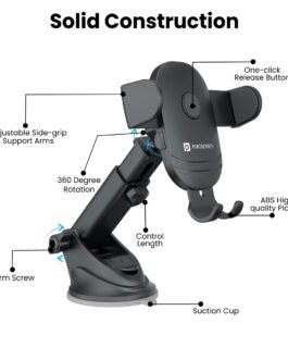 Portronics Clamp M2 Adjustable Car Mobile Phone Holder Stand for Dashboard & Windshield, 360° Rotational, Strong Suction Cup, Compatible with 4 to 6 inch Devices(Black)