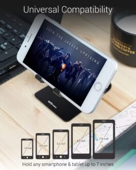 It can hold, on your work desk, any type of smartphone and tablets with size up to 7 inches easily.