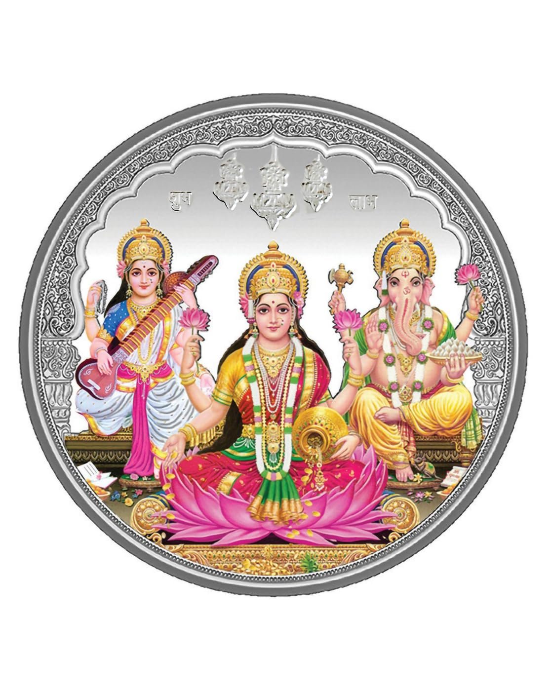 PRD CARATCAFE Pure Silver 999 Ganesh Laxmi Saraswati Silver Coin For Diwali | Dhanteras | Gifts. Hallmark Certified Silver 990