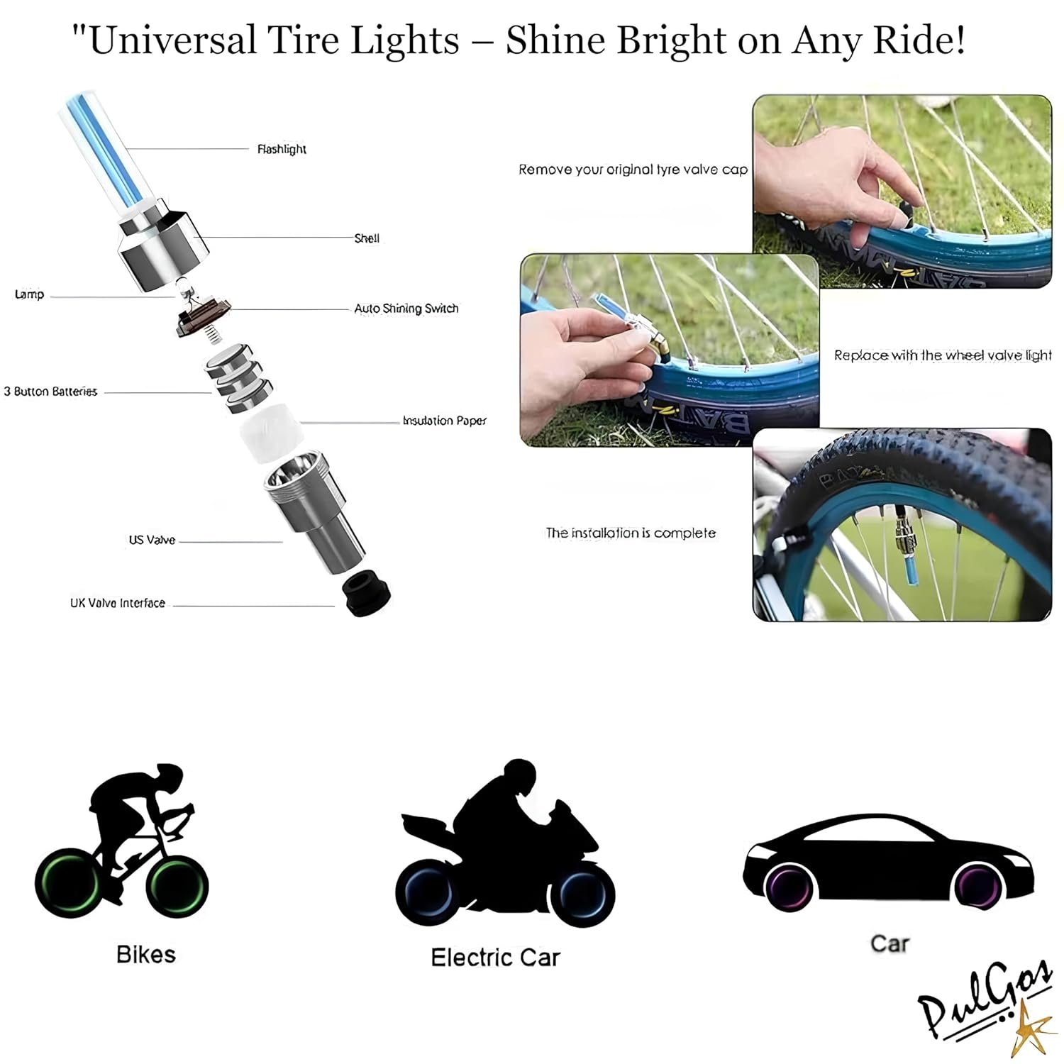 Transform every spin of your wheels into a streak of brilliance. The Pulgos Valve Cap Light activates with movement, lighting up your ride with every rotation. Designed for visibility and pure visual flair, it adds a layer of safety and style — day or night.