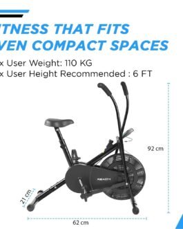 ✅ STURDY & COMPACT SIZE: Crafted from durable Alloy Steel, the Reach AB-110 exercise cycle is built to last. Its compact size and easy-to-assemble design make it perfect for home use. The package includes a user manual and spanner key for hassle-free setup.