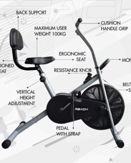 COMPACT & STRONG – Reach Exercise air bike with stationary handles and back support is one of the best buy for home cardio workout. Maximum User Weight Capacity – 100 Kg