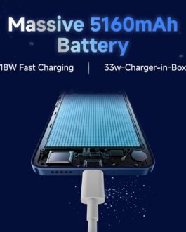 5160mAh(typ) battery with 18W fast charging support and 33W charger in-box with USB Type-C