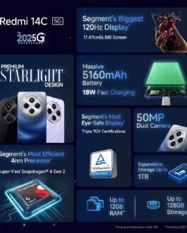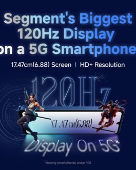 High performance – Snapdragon 4 Gen 2 5G Processor | Large 17.47cm 120Hz Display | Upto 8GB RAM including 6GB Virtual RAM |128GB Storage | Fast Side fingerprint sensor