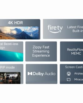 Smart TV Features: Fire TV Built-In | Supported Apps: Prime Video | Netflix | Disney+ Hotstar | YouTube | 12000+ apps from App Store | Voice Remote with Alexa | DTH Set-Top Box Integration to switch between DTH TV Channels and OTT apps from home screen | Display Mirroring – Airplay 2 & Miracast | Quad core ARM Cortex-A55 CPU | 2GB RAM + 8GB Internal Storage