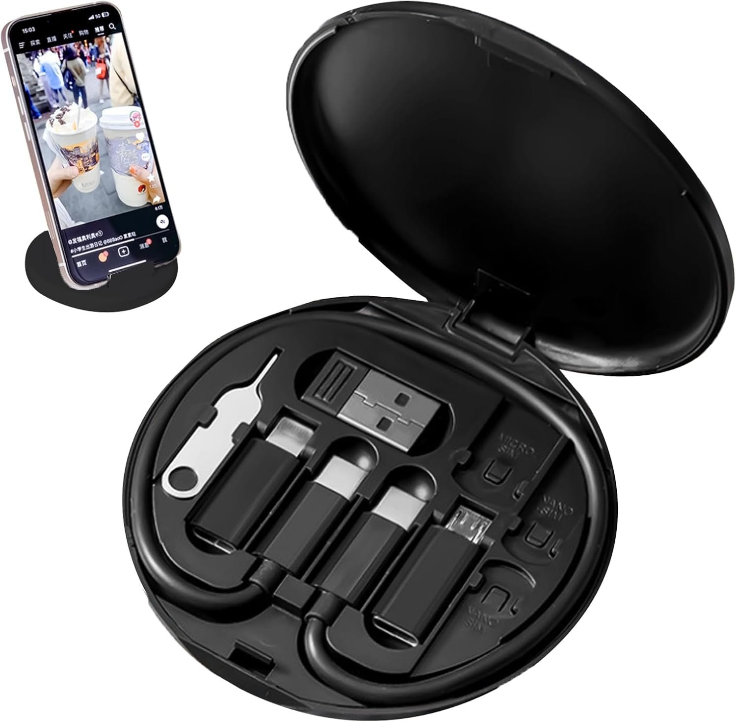 【Multi-functional USB Charging Adapter Cable Kit】Multifunctional data cable storage box,Not only can this storage box hold your cables and adaptors, but it also doubles as a phone stand.