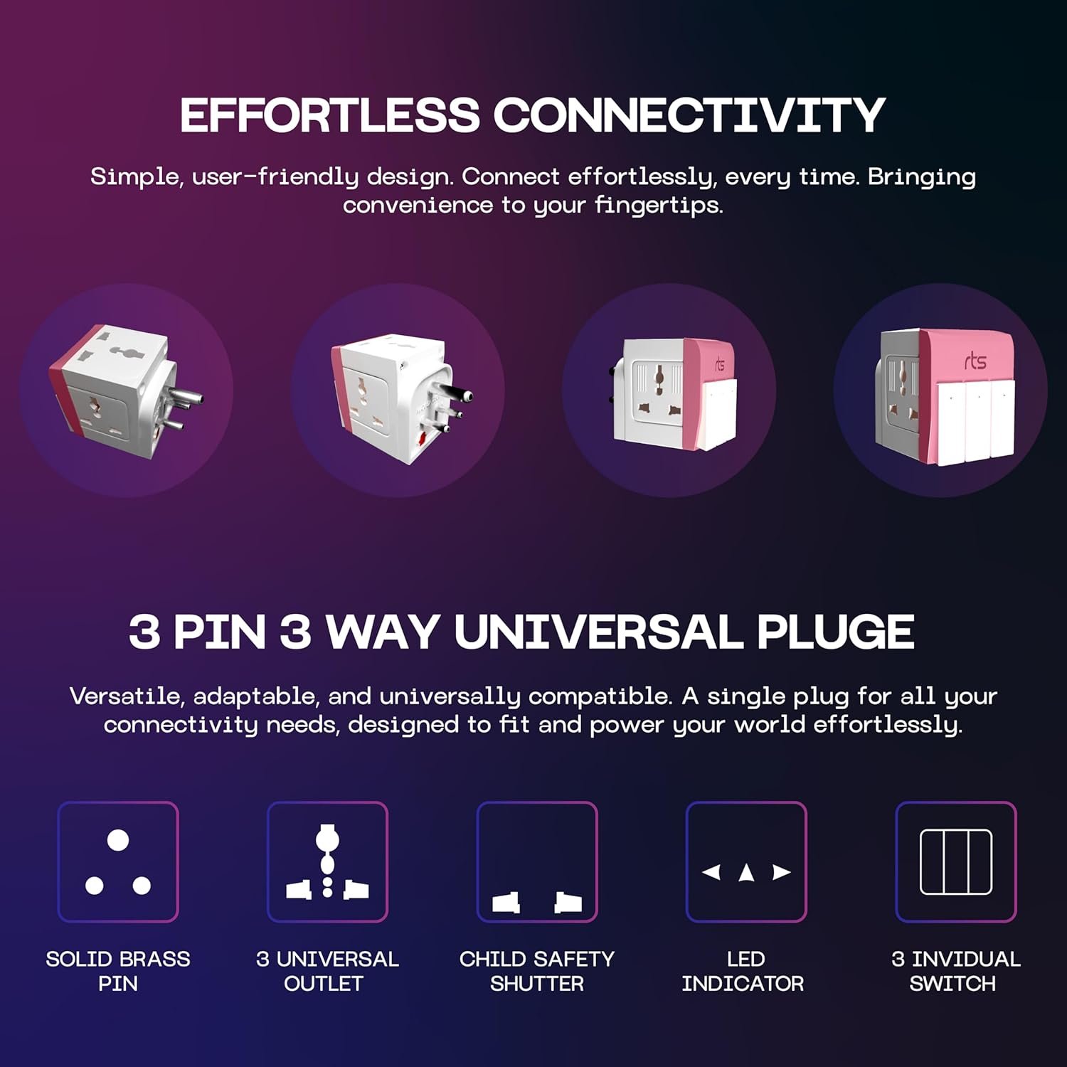 ✅SOCKETS: rts Conversion Plug Come with 3 Socket Extension with Individual Switches and LED Indicator. .Used Fire-Resistance Nylon Glass Field (35% Glass) Virgin Material. Special Phosphor Copper Conductor and Nickel Coating Socket for Better Continuity.