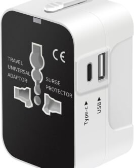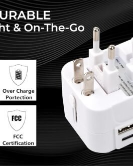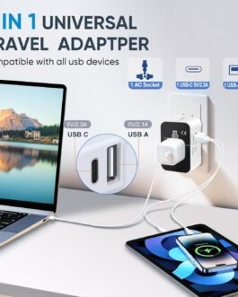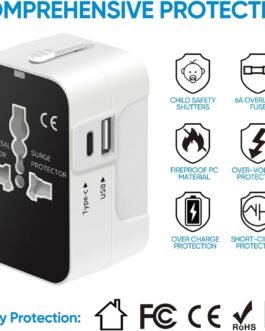🌐 【 USB-C Smart Charging】 – Our universal travel adapter features Type-C+ USB-A+ Universal AC socket, allowing you to charge your 3 devices simultaneously with High-speed. 2 USB ports with built in IC can detect your multiple devices and deliver fastest possible charging speed. The USB-C port can charge up to 2.4A