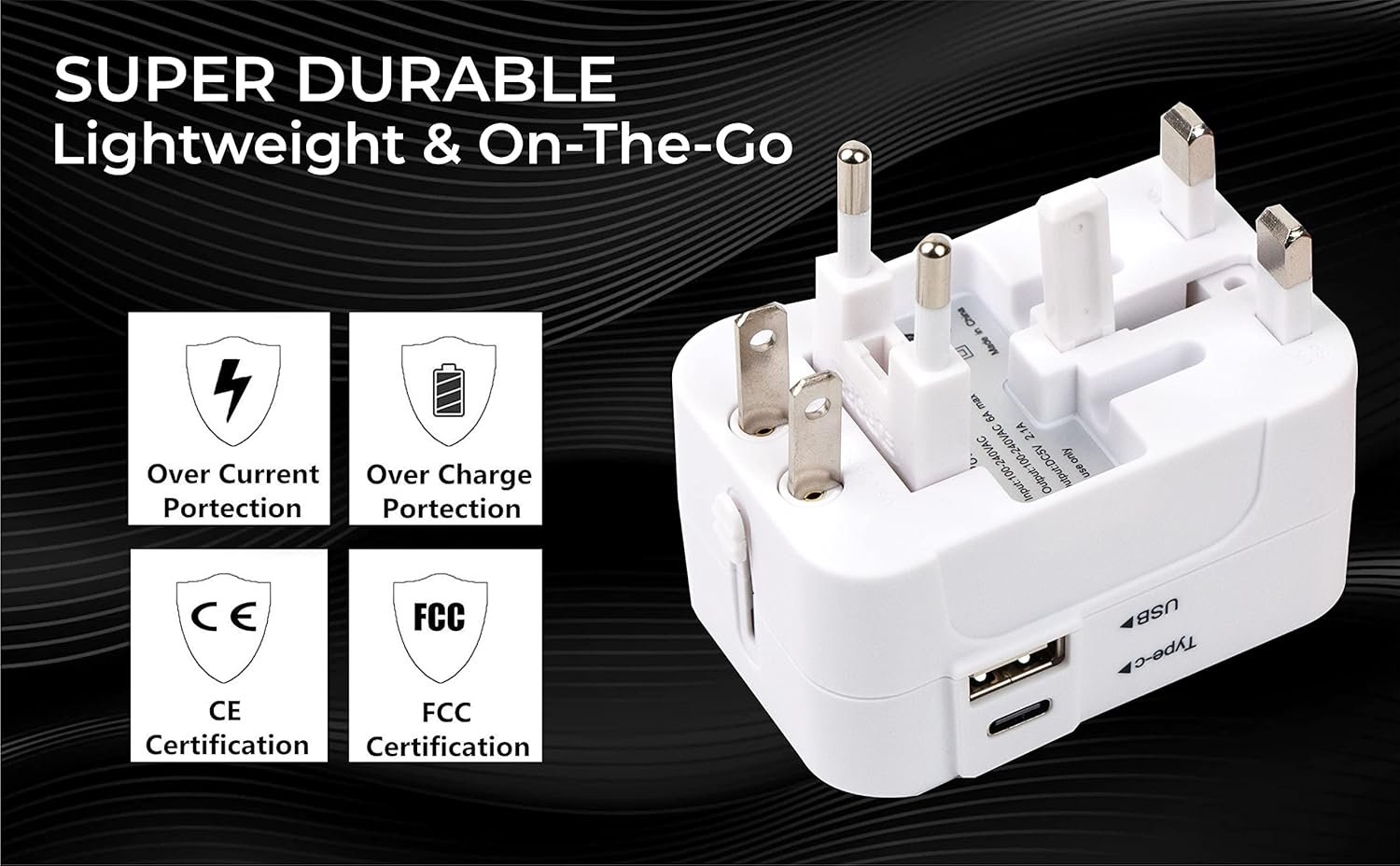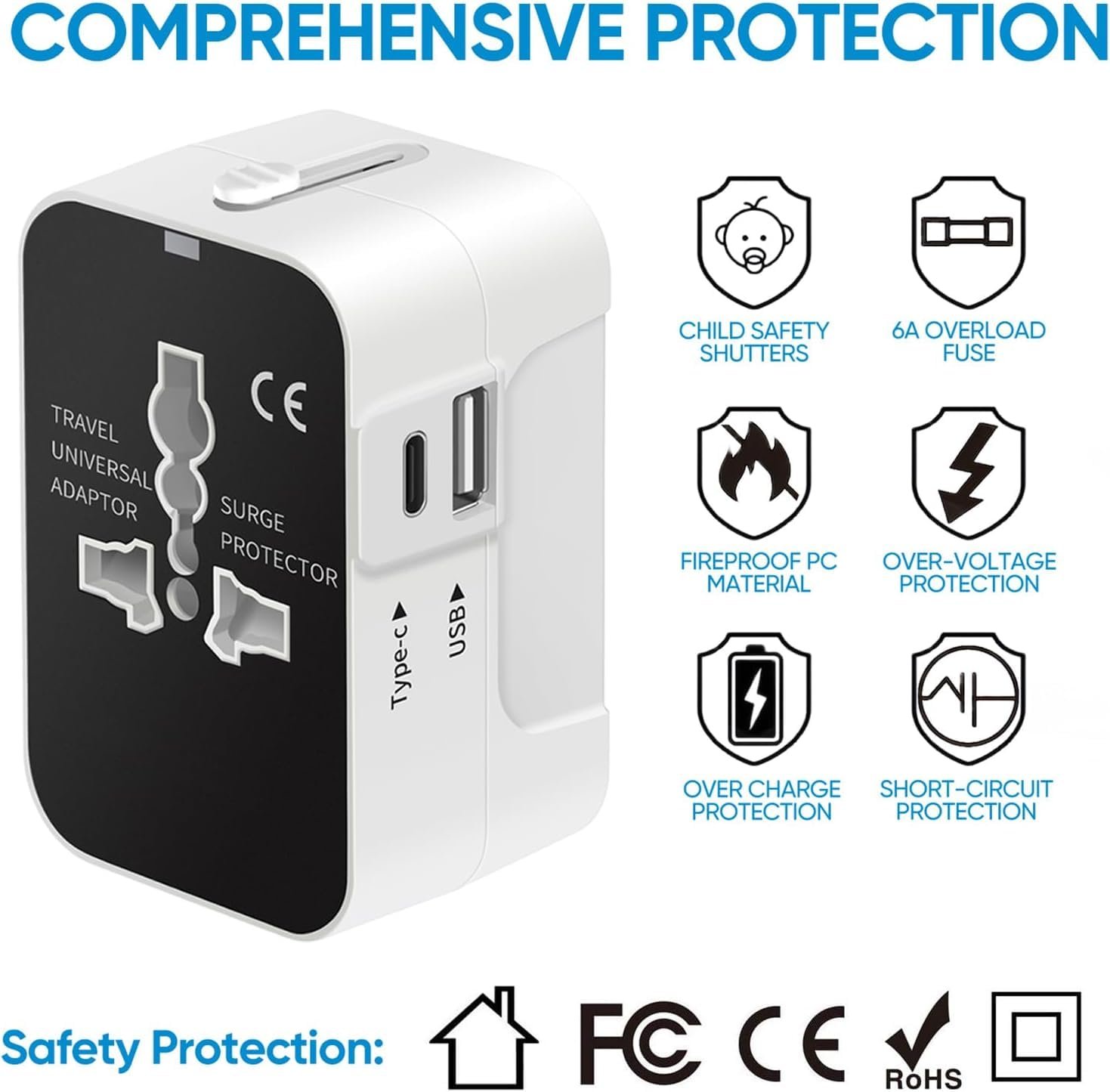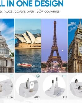 🌐 【Safety Certified】– This international travel adapter is built in Max 6A Fuse to protect your gadgets from power surges. Different from other same products, it also has safety shutters and a plug lock system, certified by RoHS, CE, and FCC, ensuring its safety and reliability to the greatest extent.