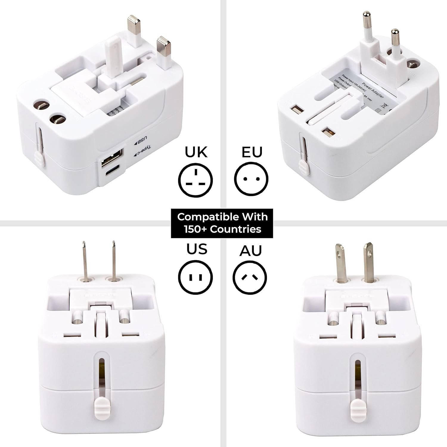 ✈🌐 【Worldwide Travel Plug Adapter】– Slim universal travel adapter, the classic slider design pushes out EU, UK, and US plugs, and you can rotate the pins for sockets in Australia or China. Covers about 224+ Countries, such as US, Italy, France, London, Germany, Austria, Switzerland, Europe, Ireland, Denmark, etc. Slim but powerful, perfect for international travel. It does NOT work in India(Type D plug) and South Africa(Type M plug).