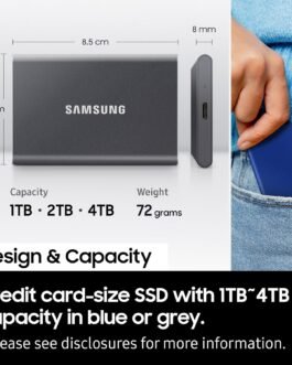 Samsung T7 2TB Up to 1,050MB/s USB 3.2 Gen 2 (10Gbps, Type-C) External Solid State Drive (Portable SSD) Grey(MU-PC2T0T)