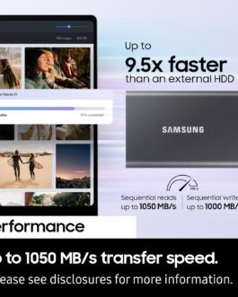 With up to 1,050 MB/s transfer speed, the T7 puts you full speed ahead at work or play.