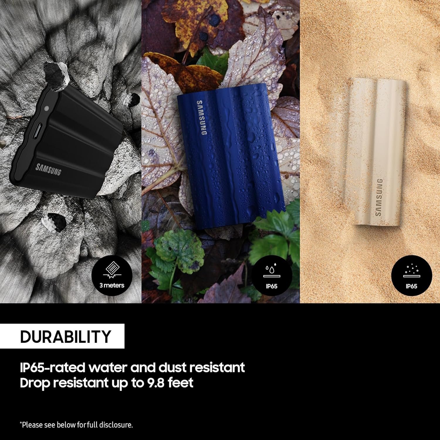 GO THE DISTANCE: Withstand whatever adventure with the wildly reliable T7 Shield; It’s designed for the elements with water1, dust2 and drop3 resistance—all, of course, at lightning speeds