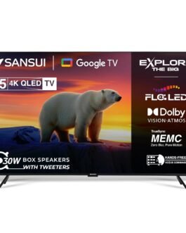 Experience Dynamic Light Dispersal with the Sansui 65-inch 4K QLED TV, powered by FloLED technology. Its Ultra-Bright LEDs and Premium S-Grade Panel deliver stunning brilliance, while the TrueColor Display brings rich, vibrant visuals across wide viewing angles.