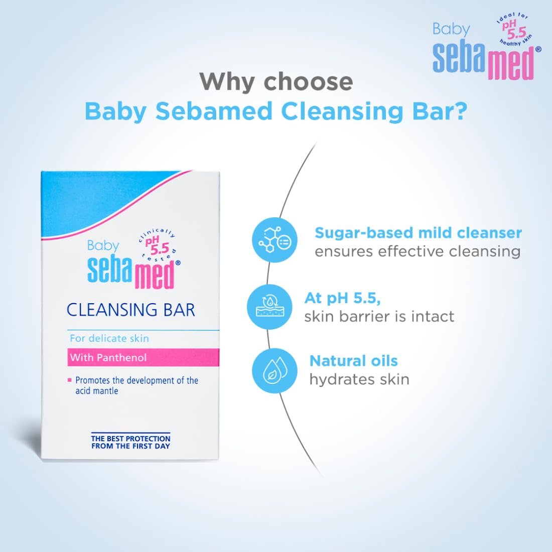 Sebamed Baby Cleansing Bar|pH 5.5 |Newborn bathing|Soap Free|Tear Free|100 gm