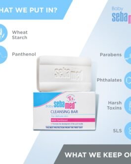Baby Sebamed Cleansing Bar is formulated by Dermatologist to ensure extra mild cleansing of baby’s delicate skin with the pH 5.5 benefits. Gentle formulation with natural Inulin soothes the baby’s delicate skin. Care complex with Panthenol helps to soothe skin.