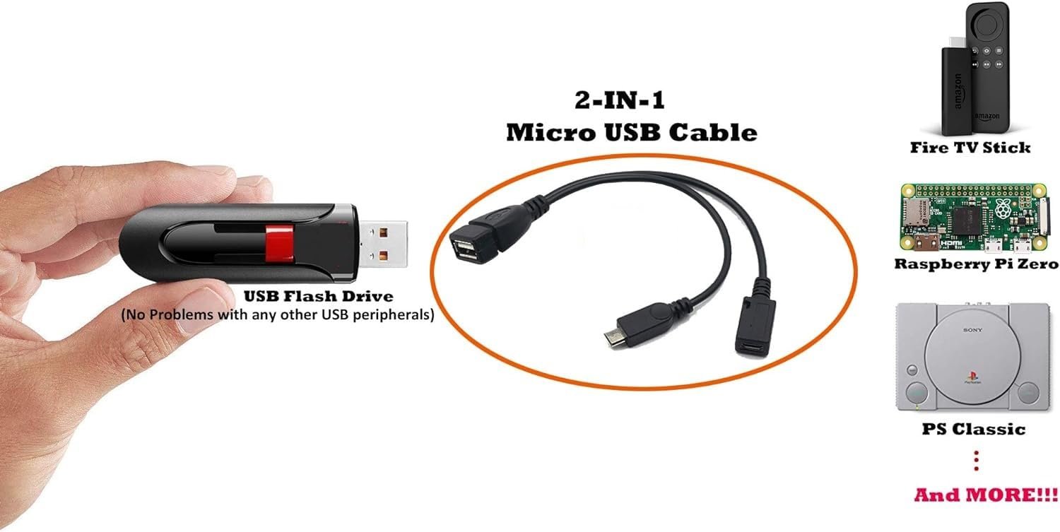 SENBUN FireStick Cable 2 in 1 OTG Amazon fire Stick Cable Micro USB y Splitter USB 2.0 Micro USB Female USB OTG Male y Splitter OTG Host hub Adapter Converter for fire TV Stick (Not for Charging)