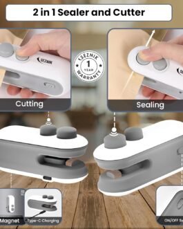 2-in-1 Heat Sealer with Cutter: This mini sealing machine comes with both heat sealing and a sharp stainless steel blade. The sealing machine for food packets helps keep food fresh by sealing food vacuum bags or chips bags directly. Creates an airtight seal to prevent spoilage, dust, bacteria, and stale taste.
