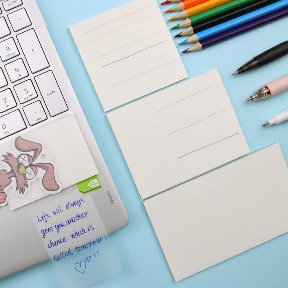 Removable = the Sticky Pad Is Easy to Paste or Remove, Can Be Pasted Repeatedly and Will Not Leave Any Traces of Glue. You Can Use a Ballpoint Pen or Pencil to Write Text on Transparent Sticky Notes, Transparent Design So That It Will Never Hide Any of Your Information