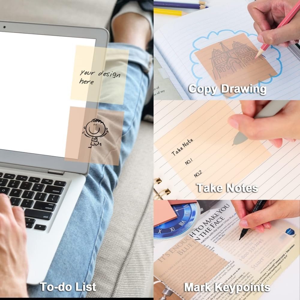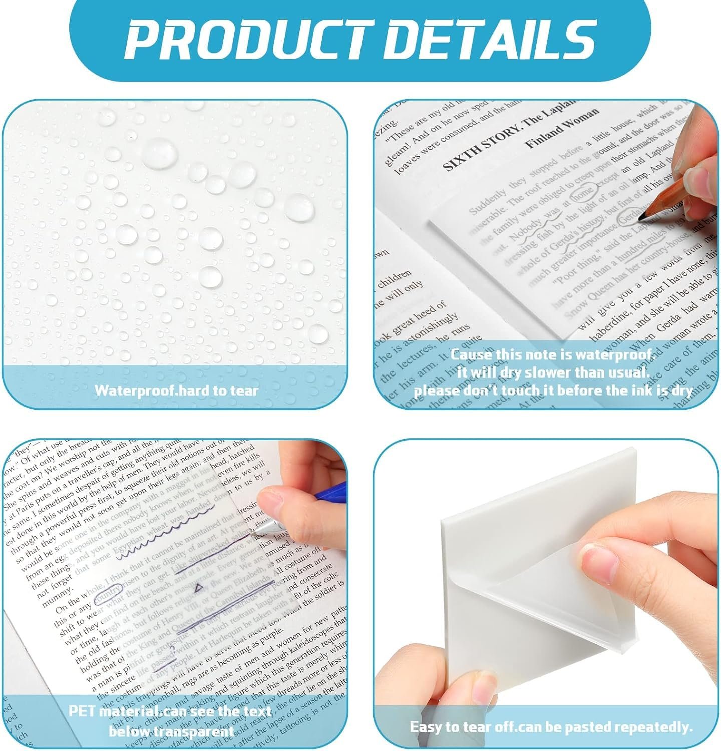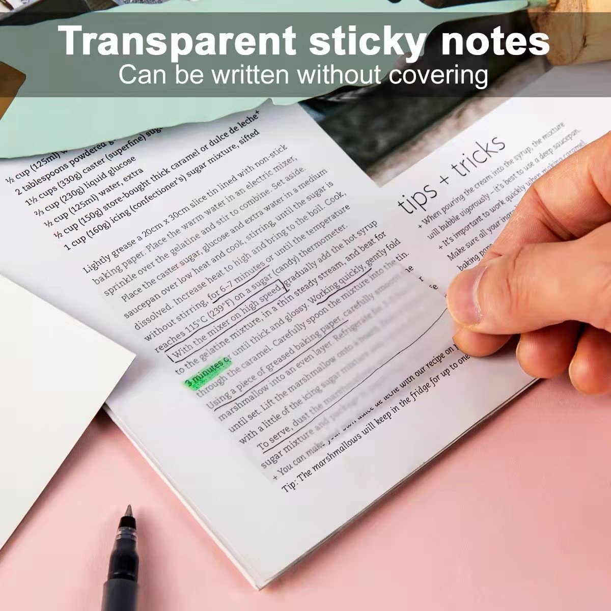 Practical Design = Transparent Sticky Notes Compared with Traditional Sticky Notes, a Clear Sticky Notes Design Can Avoid Blocking the Original Files, on the Page Adds Annotations to Books or Mark Important Documents Without Stain Book, Sticky Notes Clear Making Learning Easier.