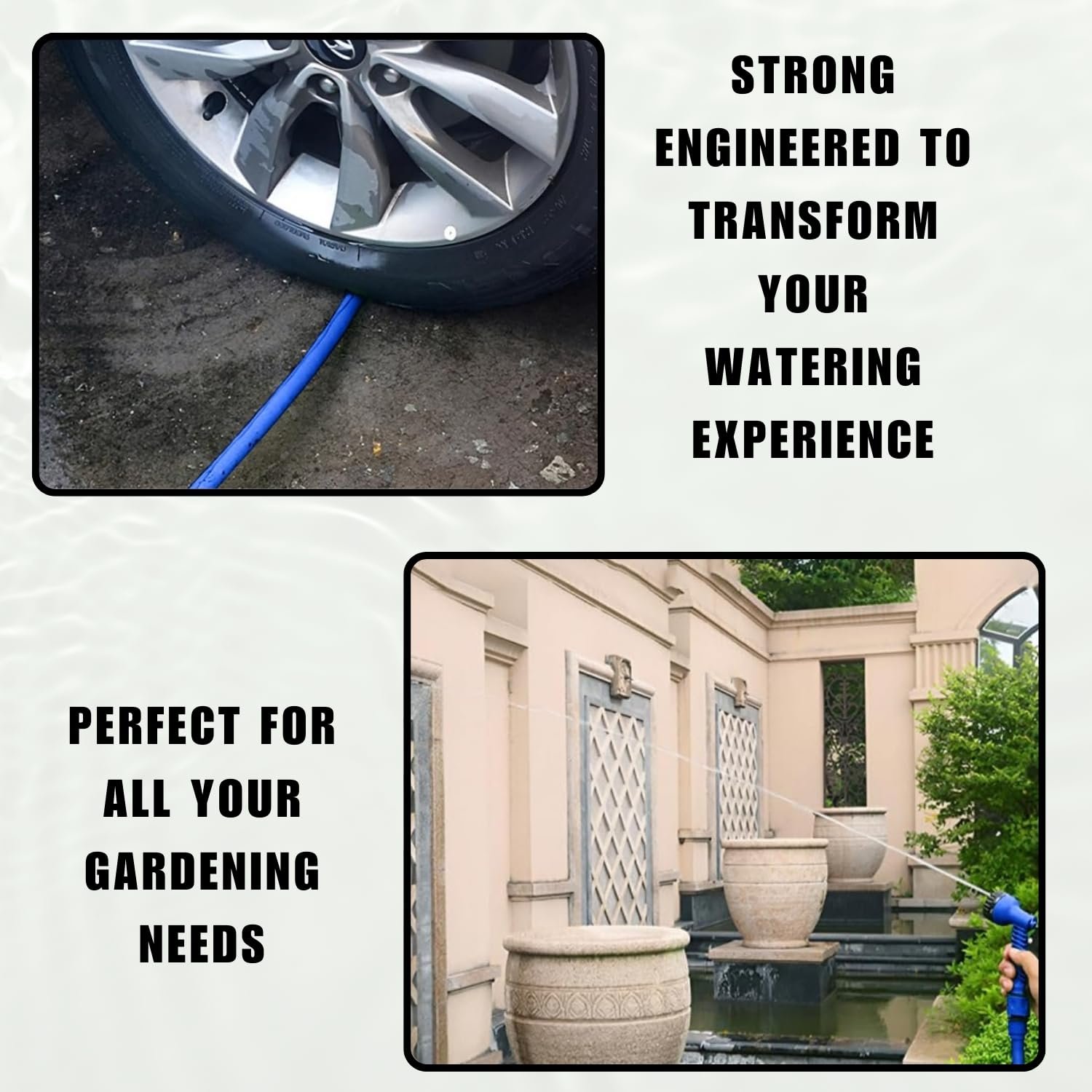 This versatile hose is perfect for watering plants, cleaning outdoor areas, washing cars, and even for pet baths. Its long reach and flexible design make it ideal for both small gardens and large yards.