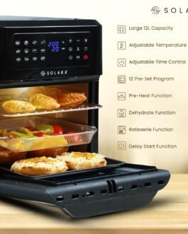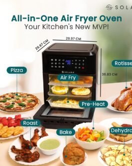12L Air Fryer Oven: Healthy Lifestyle & Guilt-Free Indulgence : Transform your kitchen with the SOLARA 12L Air Fryer Oven, an OTG Air Fryer Oven designed for healthy cooking. Its advanced 360° hot air circulation lets you enjoy grills, fries, samosas, cakes, and brownies with 90% less Oil, promoting a healthier lifestyle without compromising taste.