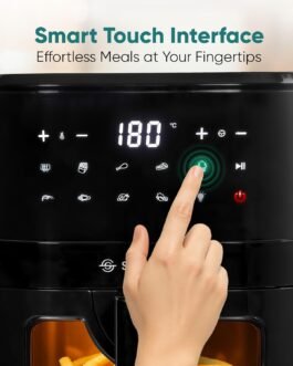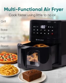 Cooking Window & Cool-Touch Handle – Monitor your food without interrupting the cooking cycle. The transparent viewing window on this air-fryer offers convenience and safety, while the cool-touch handle makes this air fryer for home safe for everyday use.