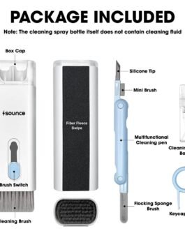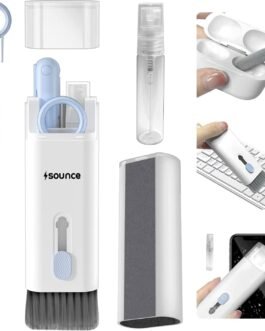 Introducing the Sounce 7-in-1 Cleaner Kit, your ultimate cleaning solution for AirPods, MacBook, iPad, iPod, and iWatch. This multifunctional cleaning brush is designed to be concise, generous, lightweight, and highly portable, making it effortless to carry wherever you go. With a comfortable grip, it easily wipes away stubborn residue, ensuring your devices stay spotless at all times.The kit includes a Clean Screen component that allows you to spray screen cleaner mist evenly on the screen. Then, use the high-fiber cloth, conveniently stuck to the cleaning box, to wipe the screen clean, leaving it gleaming and smudge-free.For your AirPods, the 3-in-1 Cleaning Pen with silicone and plastic nibs effectively cleans earwax from the sound hole of the headphones, maintaining optimal sound quality.When it comes to keyboards, whether they are mechanical, gaming, or office keyboards, our kit has you covered. Use the keycap remover (compatible with trapezoidal keycaps) to easily remove keys, and then utilize the retractable keyboard brush to clean every nook and cranny, leaving your keyboard in pristine condition.Choose the Sounce 7-in-1 Cleaner Kit for a seamless and efficient cleaning experience for all your electronic devices.