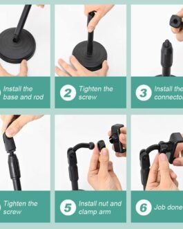 【Height Adjustable】: The compact tabletop microphone stand smoothly quick and easy, raise or lower height adjustment from 10.6’’ to 13.8’’ inch high. It also has a built in reliable tightening clamp for safety measure to avoid slip off.