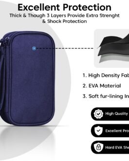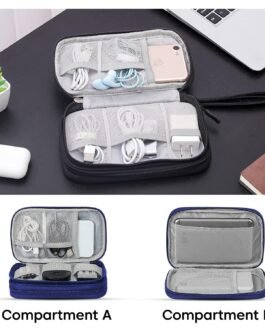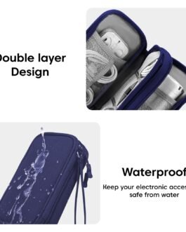 Keep your gadgets neatly organized with the Sounce Portable Tech Organizer Pouch, a compact and travel-friendly storage solution measuring 8.3″ x 5″ x 2.6″. Crafted from high-quality, water-resistant Oxford fabric with a soft padded sponge interior, this durable pouch protects your USB cables, chargers, earphones, power banks, hard drives, and digital accessories from moisture, scratches, and accidental impacts. Its smart double-layer design features multiple mesh pockets, elastic loops, and front and back compartments to keep all your items securely in place and tangle-free. Equipped with smooth dual zippers and a sturdy hand strap for convenient carrying, this organizer is perfect for commuting, office use, vacations, and everyday gadget storage.