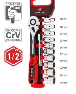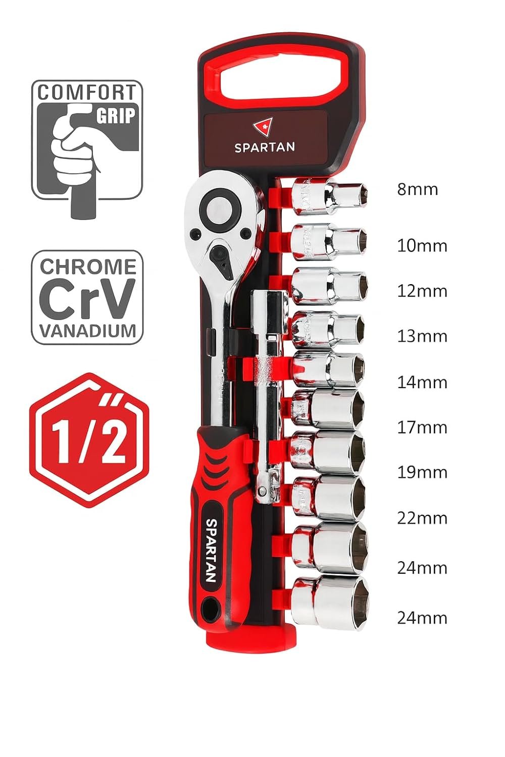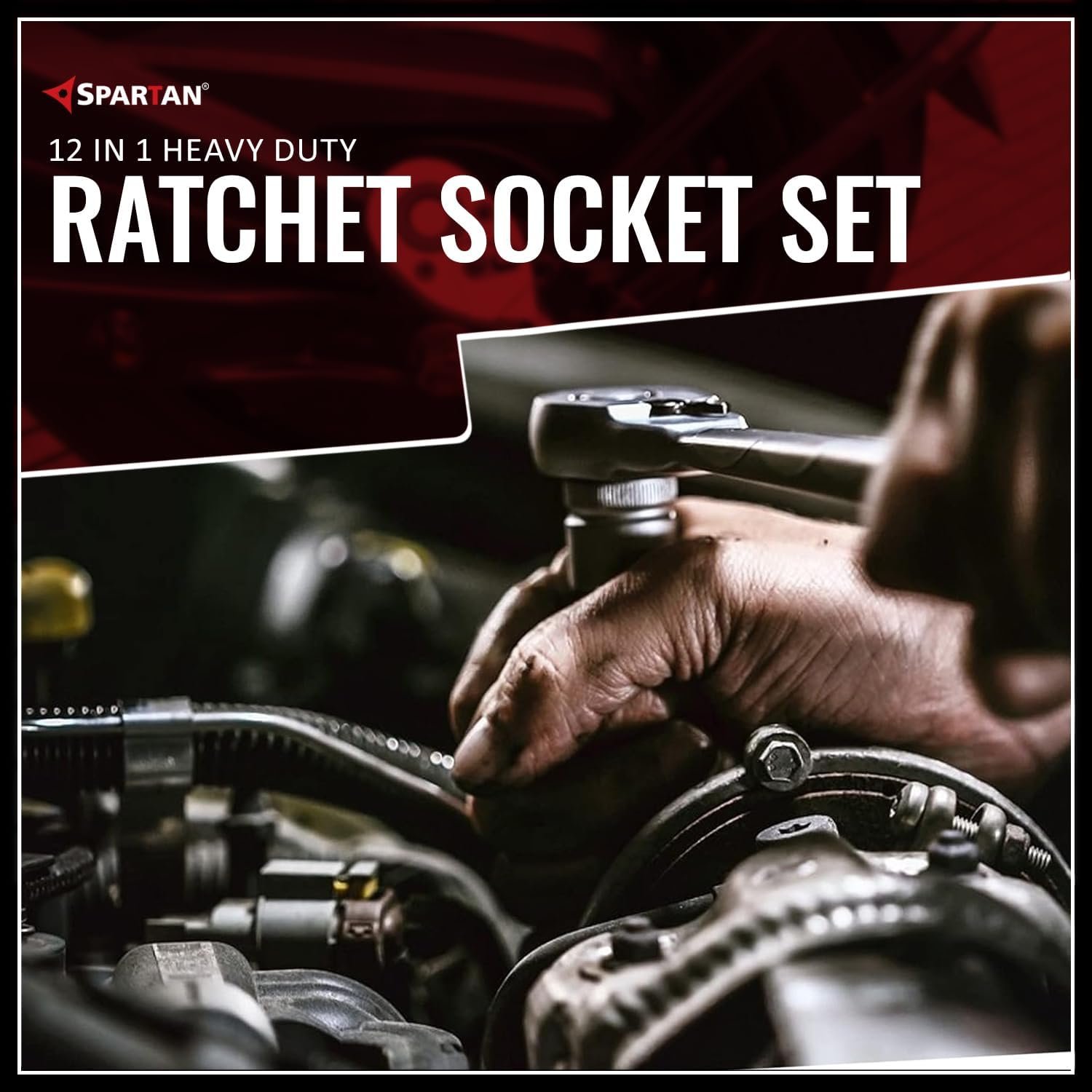 Package Contain: Spartan 12 In 1 Combination Socket Wrench Set with 1/2 inch Drive Rachet Spanner Car Repair Tool Set 8,10,12,13,14,15,17,19,22,24 mm Socket Set