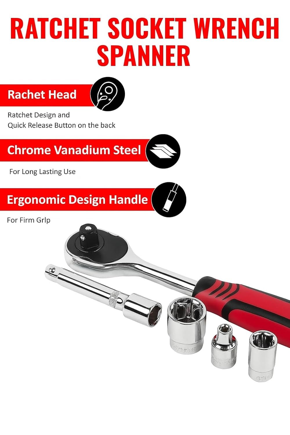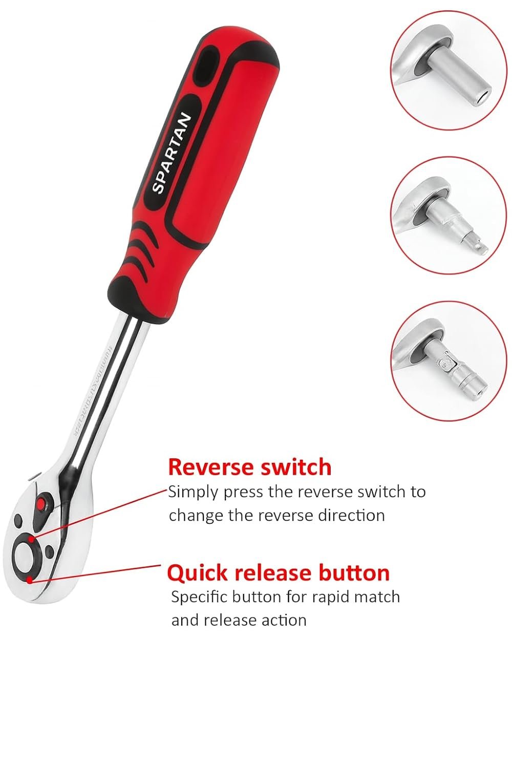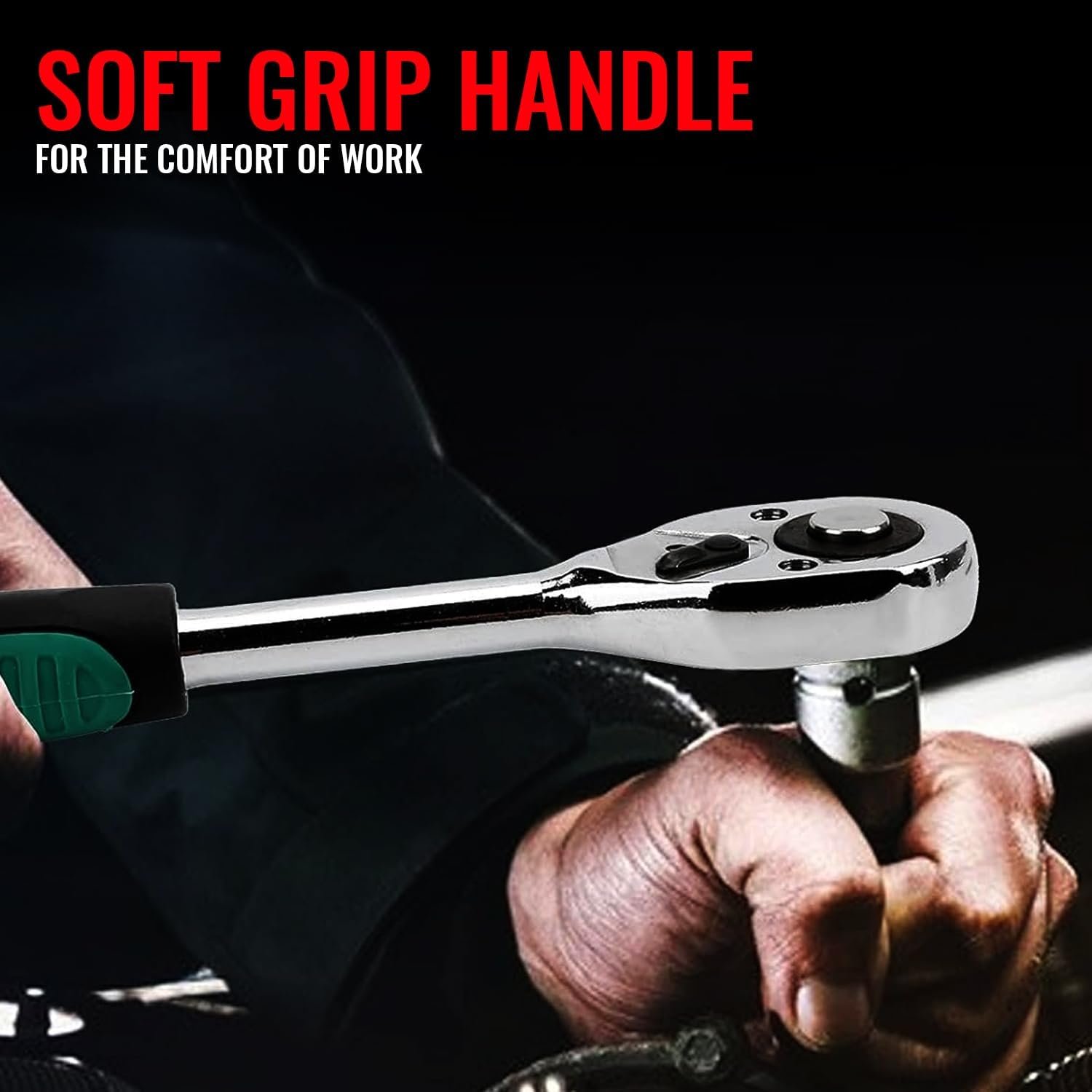 Heavy duty reversible quick release ratchet handle – Soft Grip handle for the comfort of work – Essential sockets in every garage, workshop or household