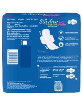 With your days full of things which you want to do, periods should be the last thing on your mind. With the Best Ever Stayfree Secure Cottony XL, you get long lasting protection from leakage and locks in wetness for up to 12 hours, so that you don’t have to stop. These Extra large pads provide extra protection and the LeakLock technology helps absorbs 2x faster so you don’t feel wet. The Stayfree Secure Cottony XL pads have a cottony cover that is gentle on your skin and helps prevent rashes. The odour control system keeps you feeling fresh. Do away with the icky icky wet feeling with the Stayfree Secure Cottony XL pads now
