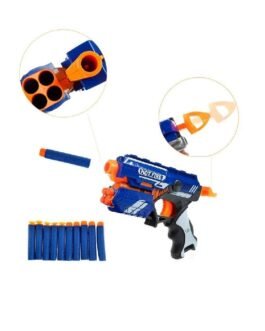 Featuring a pull-back trigger firing action and quick chamber switching function, this gun is great for playing head to head or in teams. Quick to load bullet chamber loads and shoots at the same time