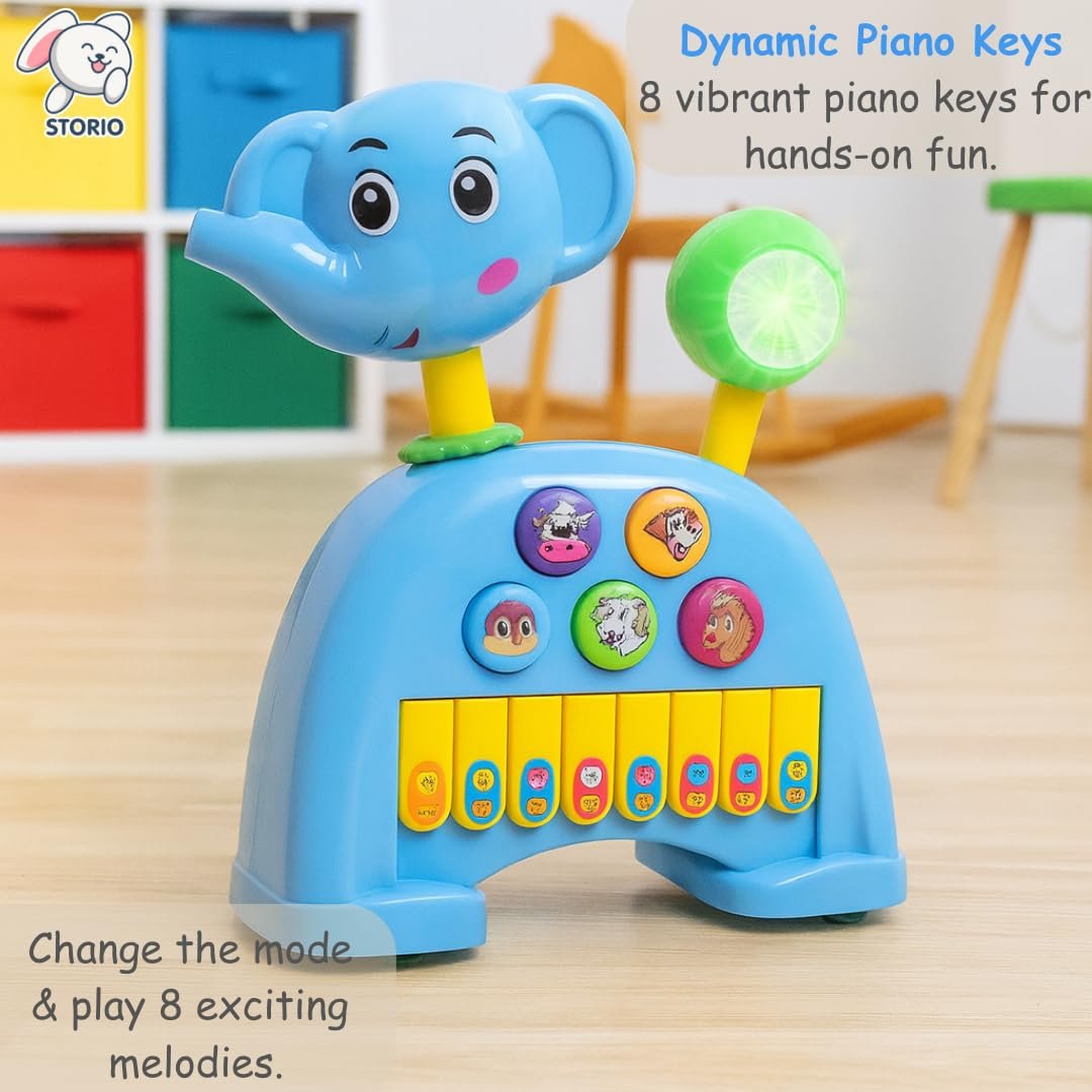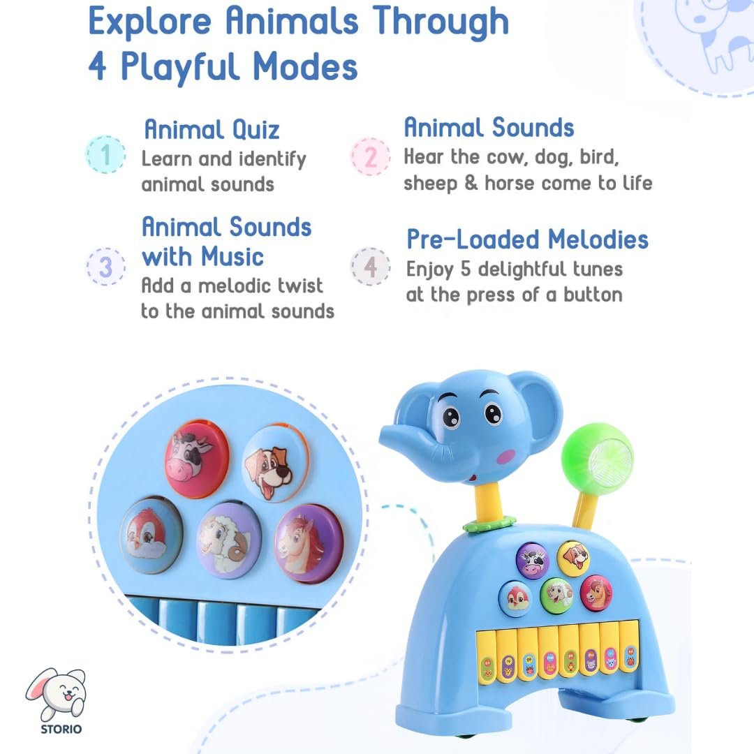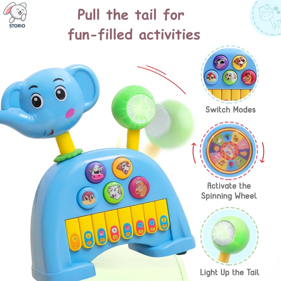 Storio Musical Light & Sound Elephant Piano with 5 Modes of Animal Sound (Colour May Vary)| Soothing Melodies| Interactive Modes| Spinning Wheel| Ideal Gifting Option